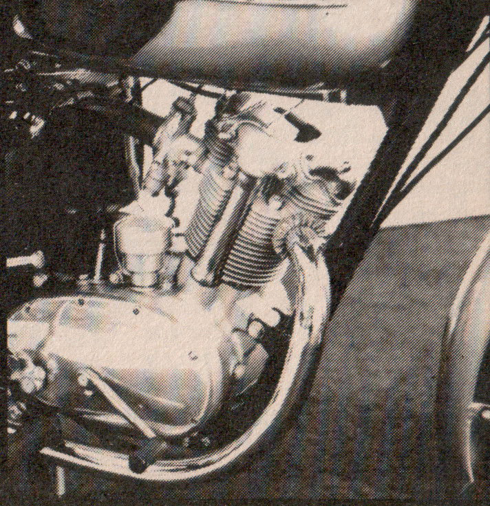 Apart from developing a funny knock, traced to a loose oil pump worm drive allowing the crank to shuffle about and lock the right piston against the flywheel, the bike started and went very well. Clutch action was light to middling, gear changing a pleasure, the power soft but sudden enough to be interesting, and fuel consumption was 60mpg overall.